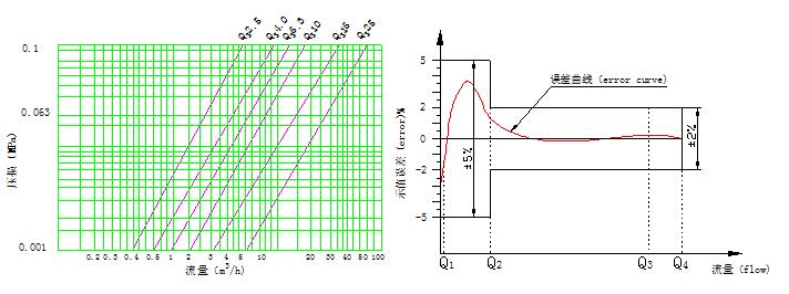 壓力損失曲線 Pressure loss curve                                                      示值誤差限與流量曲線FLOW-ERROR CURVE